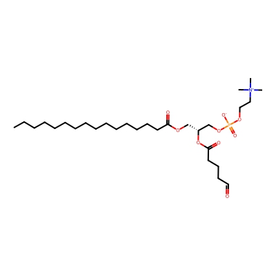 | CCSBASE_9875012eeb75c992156c98bc28f3ea84 | POVPC | [M+H]+ | 594.37652607 | 246.406 | CCCCCCCCCCCCCCCC(=O)OC[C@H](COP(=O)([O-])OCC[N+](C)(C)C)OC(=O)CCCC=O | Lipids and lipid-like molecules | 1 | 27 | TIMS | calibrated with ESI Low Concentration Tuning Mix (Agilent) | |