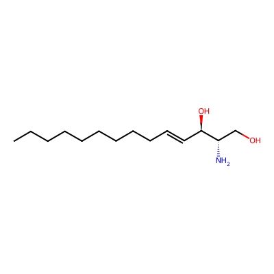 | CCSBASE_5fa9426579e8668d5d2fa87333ae1841 | Sphingosine (d20:1) | [M+Na]+ | 350.302933 | 199.8 | CCCCCCCCCCCCCCC/C=C/[C@H]([C@H](CO)N)O | Organic nitrogen compounds | 1 | 27 | TIMS | calibrated with ESI Low Concentration Tuning Mix (Agilent) | |