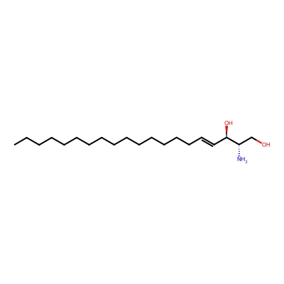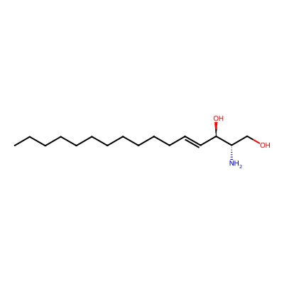 | CCSBASE_56af29f13779f26f5f8654740113c93f | Sphingosine (d20:1) | [M+H]+ | 328.32098907 | 196.533333333 | CCCCCCCCCCCCCCC/C=C/[C@H]([C@H](CO)N)O | Organic nitrogen compounds | 1 | 27 | TIMS | calibrated with ESI Low Concentration Tuning Mix (Agilent) | |