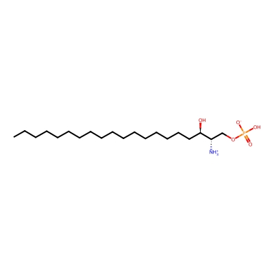| CCSBASE_c14751324a861b9f281d76d71bfb5a9c | Sphinganine-1-Phosphate (d20:0) | [M-H]- | 408.2884184 | 203.066666667 | CCCCCCCCCCCCCCCCC[C@H]([C@H](COP(=O)(O)[O-])[NH3+])O | Lipids and lipid-like molecules | -1 | 27 | TIMS | calibrated with ESI Low Concentration Tuning Mix (Agilent) | |