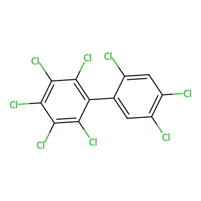 | CCSBASE_06deb076c380f9d8c840418f4694751f | 2,2',3,3',4,5,5',6'-Octachlorobiphenyl | [M]+ | 425.766471504 | 177.1 | C1=C(C(=C(C(=C1Cl)Cl)Cl)Cl)C2=C(C(=CC(=C2Cl)Cl)Cl)Cl | Benzenoids | 1 | 28 | TIMS | calibration with PAHs | |