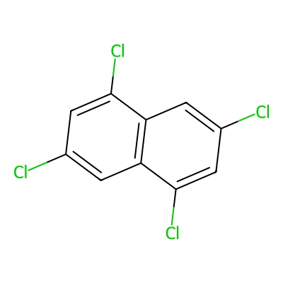 | CCSBASE_ed4c2d29c4e58915f9e3e7f0a408a6e6 | 1,2,3,5-Tetrachloronaphthalene | [M]+ | 263.906710848 | 143.2 | C1=CC2=C(C(=C(C=C2C(=C1)Cl)Cl)Cl)Cl | Benzenoids | 1 | 28 | TIMS | calibration with PAHs | |