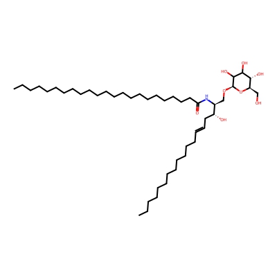 | CCSBASE_075B542C4A | GlcCer(42:0) | [M+Na]+ | 836.7 | 308.2 | CCCCCCCCCCCCCCCCCCCCCCCC(=O)N[C@@H](CO[C@H]1C(C([C@@H]([C@H](O1)CO)O)O)O)[C@@H](CCCCCCCCCCCCCCC)O | Lipids and lipid-like molecules | 1 | 1 | DT | stepped-field |
