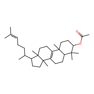 | CCSBASE_D2ADA6B010 | EUPHOL ACETATE | [M+H]+ | 469.404 | 218.0 | CC(=O)OC1CCC2(C)C3=C(CCC2C1(C)C)C1(C)CCC(C(C)CCC=C(C)C)C1(C)CC3 | None | 1 | 7 | TW | calibrated with polyalanine and drug standards | |