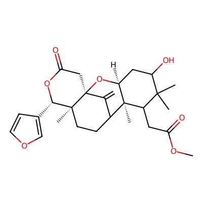 | CCSBASE_70761411DB | 3alpha-HYDROXY-3-DEOXYANGOLENSIC ACID METHYL ESTER | [M+H]+ | 473.2534 | 204.6 | C[C@@]12CCC3C(=C)[C@]1(CC(=O)O[C@H]2C4=COC=C4)O[C@@H]5[C@]3(C(C(C(C5)O)(C)C)CC(=O)OC)C | Organoheterocyclic compounds | 1 | 7 | TW | calibrated with polyalanine and drug standards | |