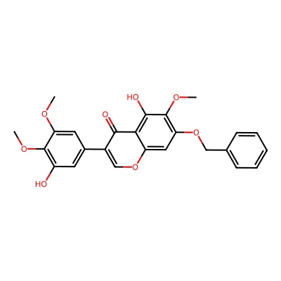 | CCSBASE_8C537A948D | IRIGENIN, 7-BENZYL ETHER | [M+H]+ | 451.1388 | 198.6 | COC1=CC(=CC(=C1OC)O)C2=COC3=CC(=C(C(=C3C2=O)O)OC)OCC4=CC=CC=C4 | Phenylpropanoids and polyketides | 1 | 7 | TW | calibrated with polyalanine and drug standards | |