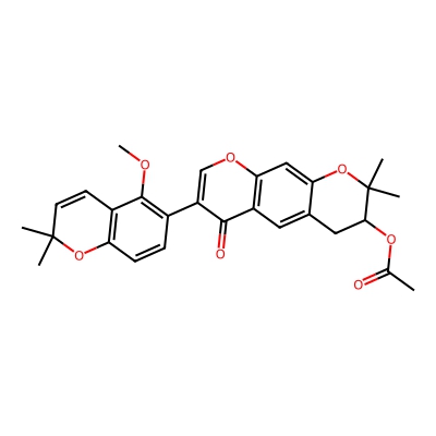 | CCSBASE_426C54CCCD | MUNDULONE ACETATE | [M+H]+ | 477.1908 | 222.7 | CC(=O)OC1CC2=CC3=C(C=C2OC1(C)C)OC=C(C3=O)C4=C(C5=C(C=C4)OC(C=C5)(C)C)OC | Phenylpropanoids and polyketides | 1 | 7 | TW | calibrated with polyalanine and drug standards | |