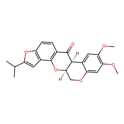 | CCSBASE_CDB3088E74 | ISOROTENONE | [M+H]+ | 395.1489 | 195.2 | CC(C)C1=CC2=C(O1)C=CC3=C2O[C@@H]4COC5=CC(=C(C=C5[C@@H]4C3=O)OC)OC | Phenylpropanoids and polyketides | 1 | 7 | TW | calibrated with polyalanine and drug standards |