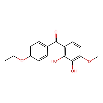 | CCSBASE_325613A3C8 | 2,3-DIHYDROXY-4-METHOXY-4'-ETHOXYBENZOPHENONE | [M+H]+ | 289.1071 | 164.0 | CCOC1=CC=C(C=C1)C(=O)C2=C(C(=C(C=C2)OC)O)O | Benzenoids | 1 | 7 | TW | calibrated with polyalanine and drug standards | |