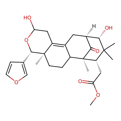 | CCSBASE_CFFB8B68BD | 3,16-DIDEOXYMEXICANOLIDE-3beta-DIOL | [M+Na]+ | 495.2353 | 202.8 | C[C@@]12CCC3C(=C1CC(O[C@H]2C4=COC=C4)O)C[C@H]5[C@@H](C([C@@H]([C@@]3(C5=O)C)CC(=O)OC)(C)C)O | Organoheterocyclic compounds | 1 | 7 | TW | calibrated with polyalanine and drug standards | |
