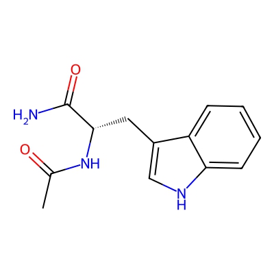 | CCSBASE_E05D73AA40 | ACETYLTRYPTOPHANAMIDE | [M+Na]+ | 268.1056 | 159.3 | CC(=O)N[C@@H](CC1=CNC2=CC=CC=C21)C(=O)N | Organoheterocyclic compounds | 1 | 7 | TW | calibrated with polyalanine and drug standards | |