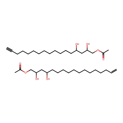 | CCSBASE_63A7AA0B72 | AVOCATIN A | [M+Na]+ | 677.4963 | 269.5 | CC(=O)OCC(CC(CCCCCCCCCCCC=C)O)O.CC(=O)OCC(CC(CCCCCCCCCCCC#C)O)O | Lipids and lipid-like molecules | 1 | 7 | TW | calibrated with polyalanine and drug standards |