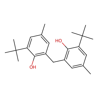 | CCSBASE_bba5e7fc4e577147118eb7a10241a6c0 | 2,2'-Methylenebis(4-methyl-6-tert-butylphenol) | [M-H]- | 339.2329 | 198.0 | CC1=CC(=C(C(=C1)C(C)(C)C)O)CC2=C(C(=CC(=C2)C)C(C)(C)C)O | Benzenoids | -1 | 29 | TW | polyala | |