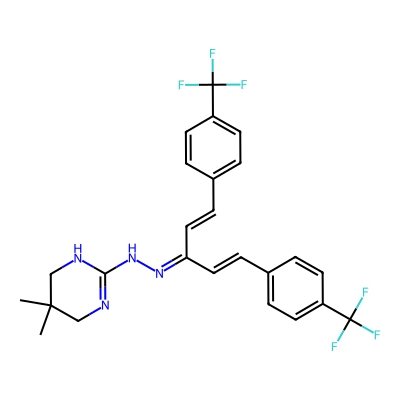 | CCSBASE_65f18c298f6c1b724dbf3ba0eca059f8 | Hydramethylnon | [M-H]- | 493.1832 | 206.59 | CC1(CNC(=NC1)NN=C(C=CC2=CC=C(C=C2)C(F)(F)F)C=CC3=CC=C(C=C3)C(F)(F)F)C | Benzenoids | -1 | 29 | TW | polyala | |