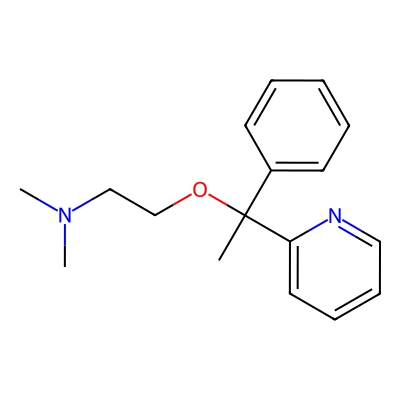 | CCSBASE_bc7e52651afa045050e351eae8aa4a07 | Doxylamine succinate | [M+H]+ | 271.1805 | 162.87 | CC(C1=CC=CC=C1)(C2=CC=CC=N2)OCCN(C)C | Benzenoids | 1 | 29 | TW | polyala | |