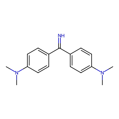 | CCSBASE_b3da9d1e1482f63c23a86f580ef066ac | Auramine hydrochloride | [M+H]+ | 268.1808 | 168.25 | CN(C)C1=CC=C(C=C1)C(=N)C2=CC=C(C=C2)N(C)C | Benzenoids | 1 | 29 | TW | polyala | |