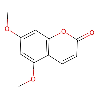 | CCSBASE_26a7e9bebd06398dc3084d9a4b311726 | 5,7-Dimethoxy-2H-chromen-2-one | [M+H]+ | 207.0652 | 139.62 | COC1=CC2=C(C=CC(=O)O2)C(=C1)OC | Phenylpropanoids and polyketides | 1 | 29 | TW | polyala | |
