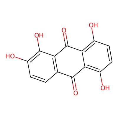 | CCSBASE_661d4c028d547b37a2e008fec979d2bc | Quinalizarin | [M+H]+ | 273.0394 | 148.92 | C1=CC(=C(C2=C1C(=O)C3=C(C=CC(=C3C2=O)O)O)O)O | Benzenoids | 1 | 29 | TW | polyala | |
