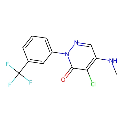 | CCSBASE_2518ecd5f1dbf5ad18e285715c4b5d77 | Norflurazon | [M-H]- | 302.0313 | 161.37 | CNC1=C(C(=O)N(N=C1)C2=CC=CC(=C2)C(F)(F)F)Cl | Benzenoids | -1 | 29 | TW | polyala | |