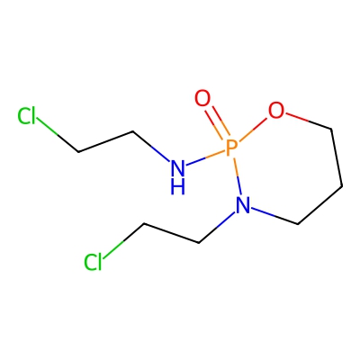| CCSBASE_26efb8f02164132fdc28ed01ffcdff9d | Ifosfamide | [M+H]+ | 261.0321 | 148.42 | C1CN(P(=O)(OC1)NCCCl)CCCl | Organoheterocyclic compounds | 1 | 29 | TW | polyala | |