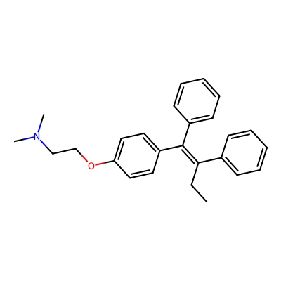 | CCSBASE_7b13b3d9e34bf6af4b1a08efa2336135 | Tamoxifen citrate | [M+H]+ | 372.2322 | 196.19 | CCC(=C(C1=CC=CC=C1)C2=CC=C(C=C2)OCCN(C)C)C3=CC=CC=C3 | Phenylpropanoids and polyketides | 1 | 29 | TW | polyala | |