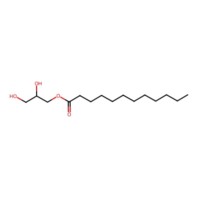 | CCSBASE_6cfa08140be58df9aafafce5e3ab5209 | 1-Monolaurin | [M+Na]+ | 297.2036 | 181.19 | CCCCCCCCCCCC(=O)OCC(CO)O | Lipids and lipid-like molecules | 1 | 29 | TW | polyala | |