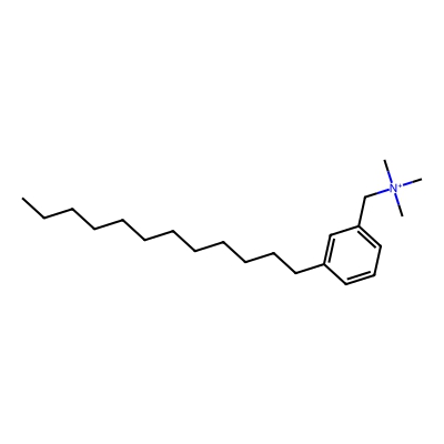 | CCSBASE_a5dbf035fee82c678b5cb28f5f70f62b | (Dodecylbenzyl)trimethylammonium chloride | [M]+ | 318.3161 | 190.04 | CCCCCCCCCCCCC1=CC(=CC=C1)C[N+](C)(C)C | None | 1 | 29 | TW | polyala |