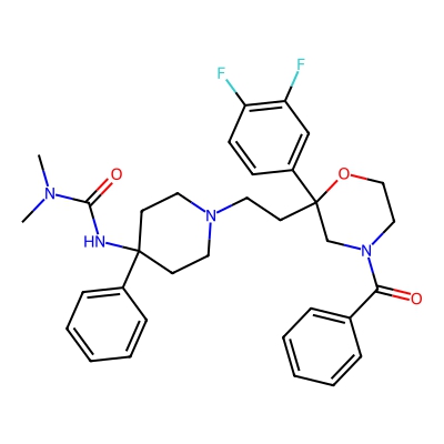 | CCSBASE_f4d54223df4713044c7f2cb8fa1f6e61 | SR144190 | [M+Na]+ | 599.2804 | 240.21 | CN(C)C(=O)NC1(CCN(CC1)CCC2(CN(CCO2)C(=O)C3=CC=CC=C3)C4=CC(=C(C=C4)F)F)C5=CC=CC=C5 | Organoheterocyclic compounds | 1 | 29 | TW | polyala | |