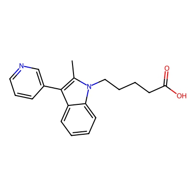 | CCSBASE_285a16eb4f4b611c72b05935aca5f18d | UK-156819 | [M-H]- | 307.1452 | 183.16 | CC1=C(C2=CC=CC=C2N1CCCCC(=O)O)C3=CN=CC=C3 | Organoheterocyclic compounds | -1 | 29 | TW | polyala | |