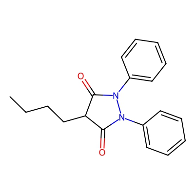 | CCSBASE_6578cd01f735986933f6a4de10503616 | Phenylbutazone | [M-H]- | 307.1452 | 178.07 | CCCCC1C(=O)N(N(C1=O)C2=CC=CC=C2)C3=CC=CC=C3 | Benzenoids | -1 | 29 | TW | polyala | |