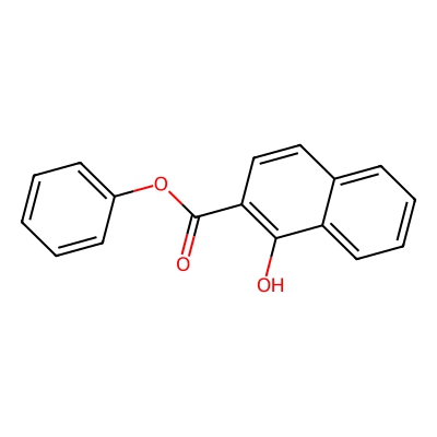 | CCSBASE_3407eab8f127a99dcbc14f0a54df9be7 | Phenyl 1-hydroxy-2-naphthoate | [M-H]- | 263.0714 | 162.59 | C1=CC=C(C=C1)OC(=O)C2=C(C3=CC=CC=C3C=C2)O | Benzenoids | -1 | 29 | TW | polyala | |