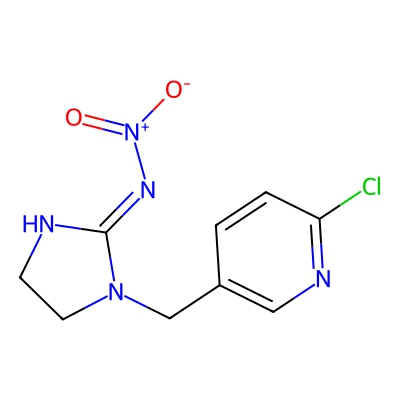 | CCSBASE_fcd5c5e7c99ceca8810943373ffd7527 | Imidacloprid | [M-H]- | 254.045 | 158.39 | C1CN(C(=N[N+](=O)[O-])N1)CC2=CN=C(C=C2)Cl | Organic nitrogen compounds | -1 | 29 | TW | polyala | |