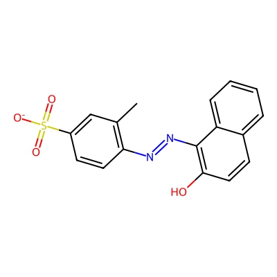 | CCSBASE_1d0589c7a929899b38488a82d9d8c379 | C.I. Acid Orange 8, monosodium salt | [M-H]- | 341.0601 | 185.64 | CC1=C(C=CC(=C1)S(=O)(=O)[O-])N=NC2=C(C=CC3=CC=CC=C32)O | Benzenoids | -1 | 29 | TW | polyala | |