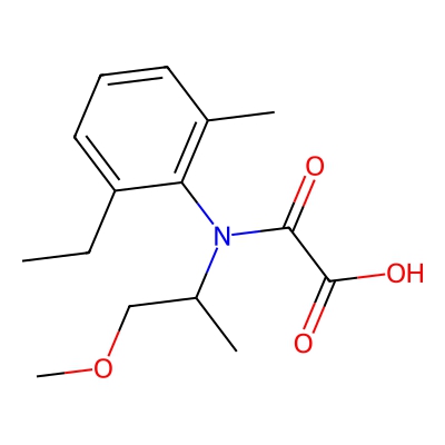 | CCSBASE_224134cc23da353e45d2667a007d4dd1 | Metolachlor OA | [M-H]- | 278.1398 | 168.99 | CCC1=CC=CC(=C1N(C(C)COC)C(=O)C(=O)O)C | Organic acids and derivatives | -1 | 29 | TW | polyala | |