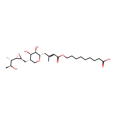 | CCSBASE_AA0D9F24F4 | MUPIROCIN | [M+H]+ | 501.3058 | 214.8 | C[C@H]([C@H]1[C@@H](O1)C[C@H]2CO[C@H]([C@@H]([C@@H]2O)O)C/C(=C/C(=O)OCCCCCCCCC(=O)O)/C)[C@H](C)O | Lipids and lipid-like molecules | 1 | 7 | TW | calibrated with polyalanine and drug standards | |