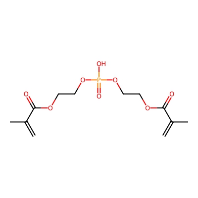 | CCSBASE_4eb7c48959cda8f601ccbaf774b9b7d4 | Bis(methacryloyloxyethyl) hydrogen phosphate | [M-H]- | 321.0745 | 179.22 | CC(=C)C(=O)OCCOP(=O)(O)OCCOC(=O)C(=C)C | Organic acids and derivatives | -1 | 29 | TW | polyala | |