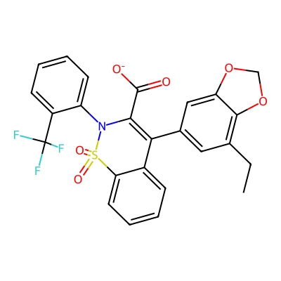| CCSBASE_c7e7ba5b0b8d081034c38b0ee6a5a5b7 | Fandosentan potassium salt | [M-H]- | 516.0734 | 214.71 | CCC1=C2C(=CC(=C1)C3=C(N(S(=O)(=O)C4=CC=CC=C43)C5=CC=CC=C5C(F)(F)F)C(=O)[O-])OCO2 | Organoheterocyclic compounds | -1 | 29 | TW | polyala | |