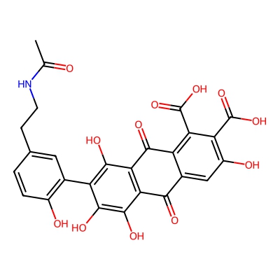 | CCSBASE_DF25D535BC | LACCAIC ACID A | [M+H]+ | 538.098 | 218.5 | CC(=O)NCCC1=CC(=C(C=C1)O)C2=C(C3=C(C(=C2O)O)C(=O)C4=CC(=C(C(=C4C3=O)C(=O)O)C(=O)O)O)O | Benzenoids | 1 | 7 | TW | calibrated with polyalanine and drug standards | |