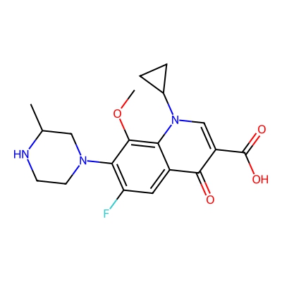 | CCSBASE_F19EB1089F | GATIFLOXACIN | [M+H]+ | 376.1667 | 189.5 | CC1CN(CCN1)C2=C(C=C3C(=C2OC)N(C=C(C3=O)C(=O)O)C4CC4)F | Organoheterocyclic compounds | 1 | 7 | TW | calibrated with polyalanine and drug standards | |