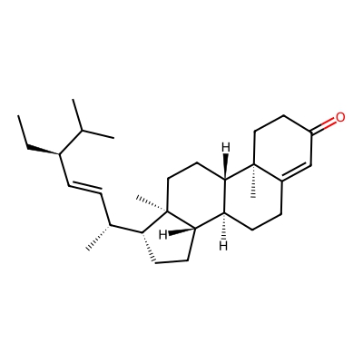 | CCSBASE_AB8B89DB07 | STIGMASTA-4,22-DIEN-3-ONE | [M+H]+ | 411.3622 | 218.5 | CC[C@H](/C=C/[C@@H](C)[C@H]1CC[C@@H]2[C@@]1(CC[C@H]3[C@H]2CCC4=CC(=O)CC[C@]34C)C)C(C)C | Lipids and lipid-like molecules | 1 | 7 | TW | calibrated with polyalanine and drug standards | |