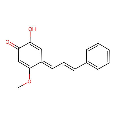 | CCSBASE_669B035E19 | OBTUSAQUINONE | [M+H]+ | 255.1016 | 155.1 | COC\1=CC(=O)C(=C/C1=C\C=C\C2=CC=CC=C2)O | Organic oxygen compounds | 1 | 7 | TW | calibrated with polyalanine and drug standards |