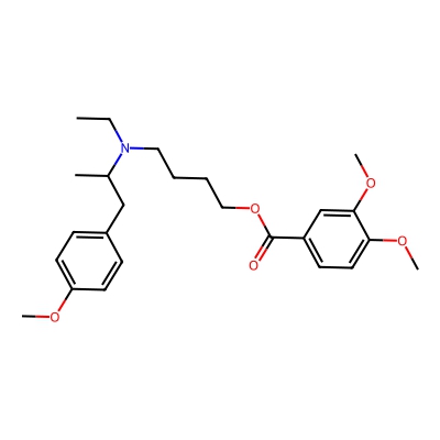 | CCSBASE_46474E02A5 | MEBEVERINE HYDROCHLORIDE | [M+H]+ | 430.2588 | 205.7 | CCN(CCCCOC(=O)c1ccc(OC)c(OC)c1)C(C)Cc1ccc(OC)cc1 | None | 1 | 7 | TW | calibrated with polyalanine and drug standards | |