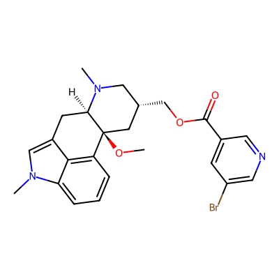 | CCSBASE_78666F1319 | NICERGOLINE | [M+H]+ | 484.1231 | 213.8 | CN1C[C@@H](C[C@]2([C@H]1CC3=CN(C4=CC=CC2=C34)C)OC)COC(=O)C5=CC(=CN=C5)Br | Organoheterocyclic compounds | 1 | 7 | TW | calibrated with polyalanine and drug standards |