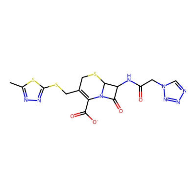 | CCSBASE_E0AF2560CC | CEFAZOLIN SODIUM | [M+H]+ | 455.0373 | 183.9 | Cc1nnc(SCC2=C(C(=O)[O-])N3C(=O)C(NC(=O)Cn4cnnn4)C3SC2)s1 | None | 1 | 7 | TW | calibrated with polyalanine and drug standards | |