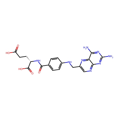 | CCSBASE_1175A8BBF2 | AMINOPTERIN | [M+H]+ | 441.163 | 204.4 | C1=CC(=CC=C1C(=O)N[C@@H](CCC(=O)O)C(=O)O)NCC2=CN=C3C(=N2)C(=NC(=N3)N)N | Organoheterocyclic compounds | 1 | 7 | TW | calibrated with polyalanine and drug standards | |