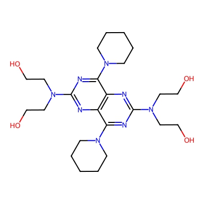 | CCSBASE_6FA0B92C1E | DIPYRIDAMOLE | [M+H]+ | 505.3246 | 223.9 | C1CCN(CC1)C2=NC(=NC3=C2N=C(N=C3N4CCCCC4)N(CCO)CCO)N(CCO)CCO | Organic nitrogen compounds | 1 | 7 | TW | calibrated with polyalanine and drug standards | |