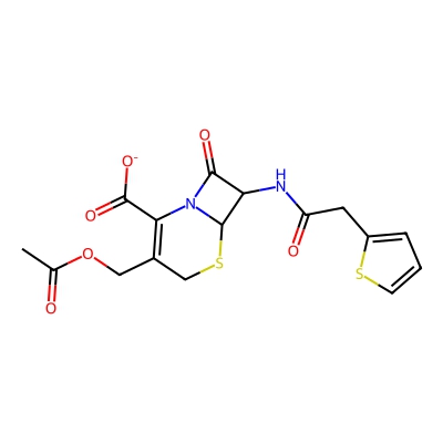| CCSBASE_458E7641B6 | CEPHALOTHIN SODIUM | [M+Na]+ | 419.0342 | 183.1 | CC(=O)OCC1=C(C(=O)[O-])N2C(=O)C(NC(=O)Cc3cccs3)C2SC1 | None | 1 | 7 | TW | calibrated with polyalanine and drug standards | |