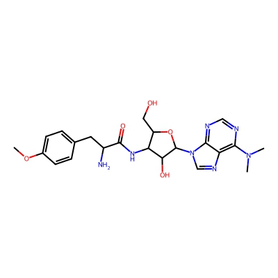 | CCSBASE_7BB9F7195B | PUROMYCIN HYDROCHLORIDE | [M+H]+ | 472.2303 | 204.4 | COc1ccc(CC(N)C(=O)NC2C(CO)OC(n3cnc4c(N(C)C)ncnc43)C2O)cc1 | None | 1 | 7 | TW | calibrated with polyalanine and drug standards | |