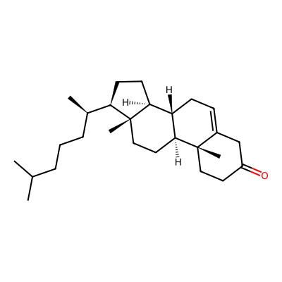 | CCSBASE_0966C935FE | CHOLEST-5-EN-3-ONE | [M+H]+ | 385.3465 | 211.4 | C[C@H](CCCC(C)C)[C@H]1CC[C@@H]2[C@@]1(CC[C@H]3[C@H]2CC=C4[C@@]3(CCC(=O)C4)C)C | Lipids and lipid-like molecules | 1 | 7 | TW | calibrated with polyalanine and drug standards | |