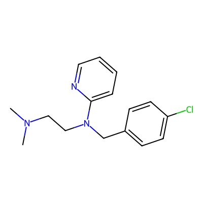 | CCSBASE_E5D4AE1B39 | CHLOROPYRAMINE HYDROCHLORIDE | [M+H]+ | 290.1419 | 167.9 | CN(C)CCN(Cc1ccc(Cl)cc1)c1ccccn1 | None | 1 | 7 | TW | calibrated with polyalanine and drug standards | |